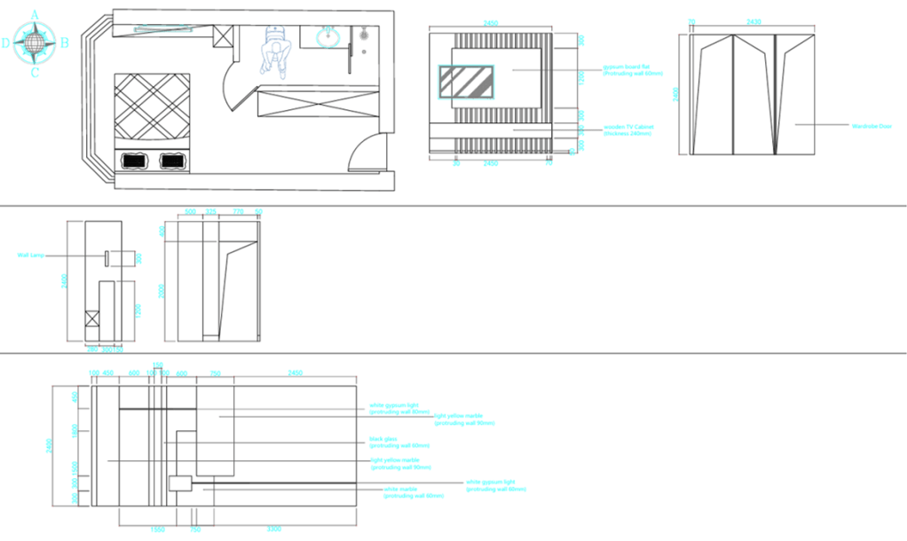 For the room design, I incorporated some subtle, suggestive lines. Since dementia patients may not be able to understand standard signage, I used these lines as visual cues to indicate directions, such as where to walk or where to stop. This helps guide their movements in a way that is both intuitive and safe.