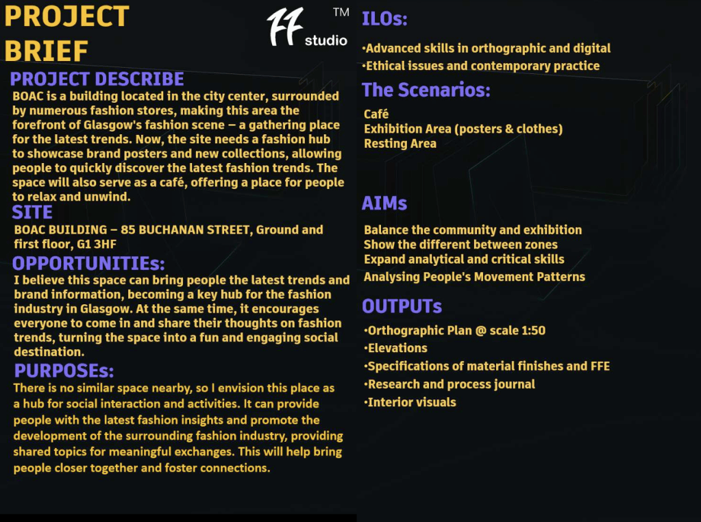 The brief and all user requirements for this project were defined and completed by myself. However, when I looked back at it later, I realized that the outcome didn’t quite meet expectations. Neither the conceptual design nor the final presentation lived up to what I had envisioned. I will continue to work hard and improve in future projects