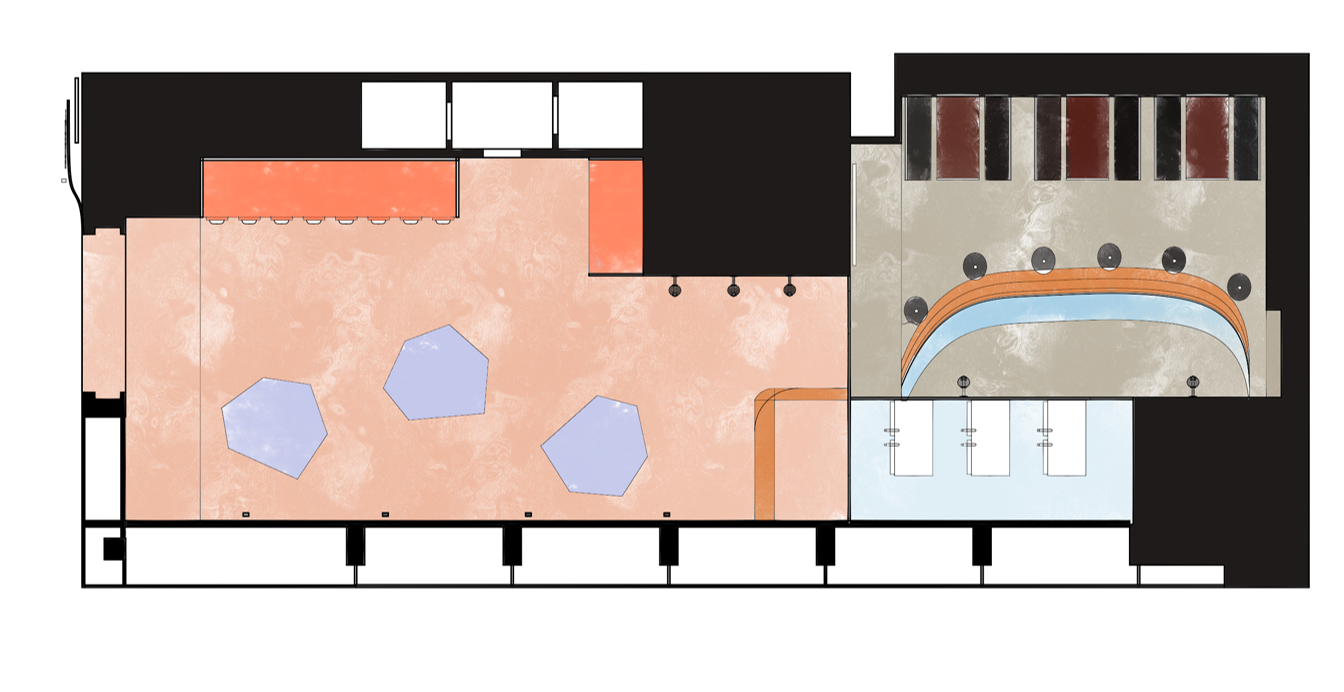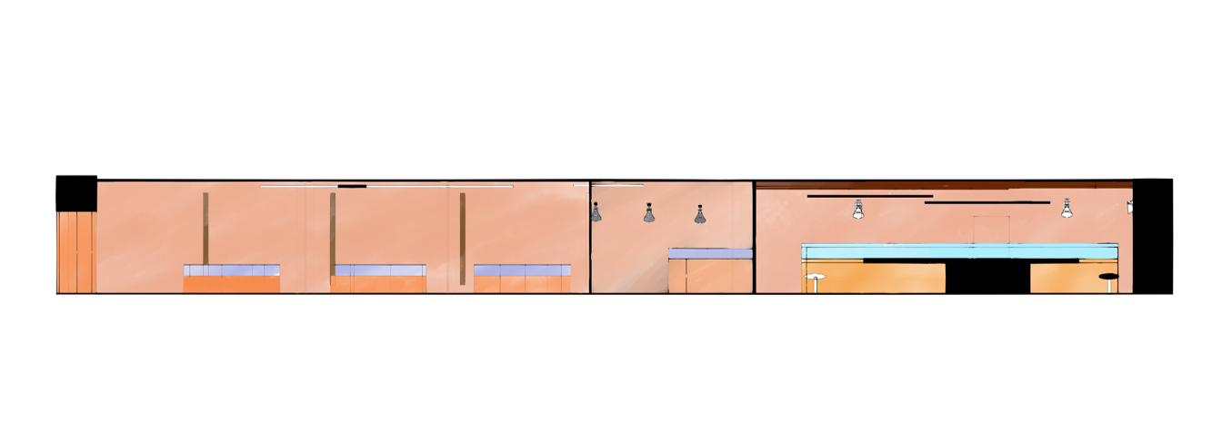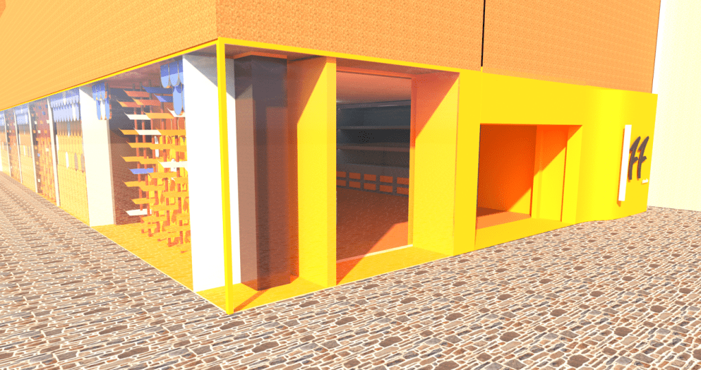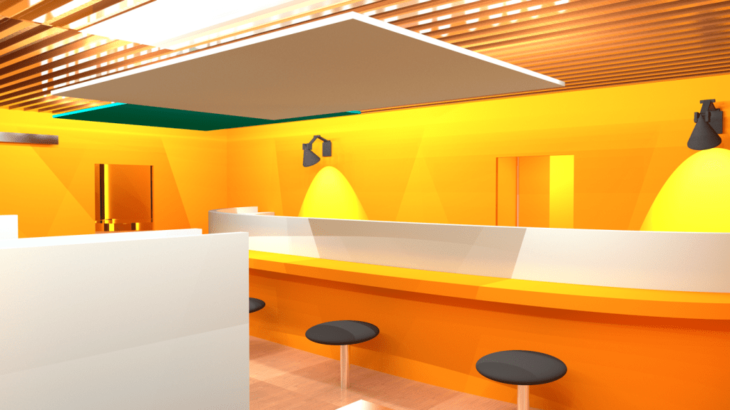 I’m designing a fishmonger, aiming for it to be a unique establishment. I hope to challenge people’s traditional perceptions of fish stores as being fishy and dirty. Instead, I want my fish store to surprise customers the moment they enter, making them think, “Wow, this is a fish store?” To achieve this, I’ve explored various concepts and decided to sell my fish in a manner similar to luxury handbags. Therefore, I’ve chosen a completely different approach. Firstly, I’ve selected orange as the main color scheme and incorporated a dining area inside. The choice of orange aims to shock customers upon entry, as traditional fish stores are not typically orange. I want to eliminate these stereotypes from people’s minds as soon as they step into my store. Setting up a simple kitchen inside is another point I believe can attract customers. Chefs will prepare the fish on-site, allowing customers to quickly enjoy fresh fish after purchasing. I believe this aspect can provide customers with a sense of “freshness.”