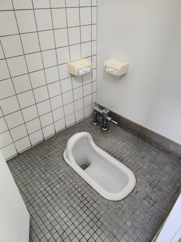 Meanwhile, in the field of public sanitation, a new form of squat toilet system was developed. These toilets were connected below by a shared channel and flushed collectively at fixed times.(figure 12) At one end of the underground channel there was a large water tank, while the other end connected directly to the sewer system. This configuration typified public toilets in China during this period and was commonly found in schools or hospitals constructed in the 1990s.