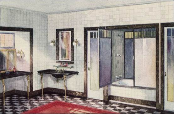 Within the interior layout of the toilet, Western influences are further evident. The flooring consists of small, patterned ceramic tiles, a style popular in the West at the time, while the walls are covered with plain white tiles. Comparable features can be observed in contemporary European and American design advertisements (see Figure 2). Following the Meiji Restoration, Japan sought both to disengage from Western domination and to establish itself as a strong competitor to the West. On this ideological foundation, the Japanese introduced localized modifications to Western design styles, including the reduction of excessive ornamentation, the consistent use of white walls, and the avoidance of contrasting colors or conspicuous patterns.
